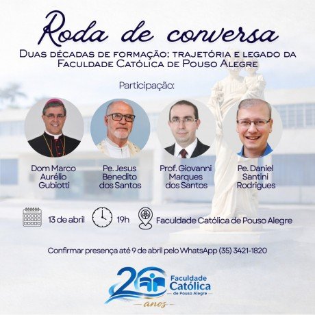 Aconteceu, na noite desta segunda-feira, 13 de abril, a Roda de Conversa em comemoração aos 20 anos de criação da Faculdade Católica de Pouso Alegre.