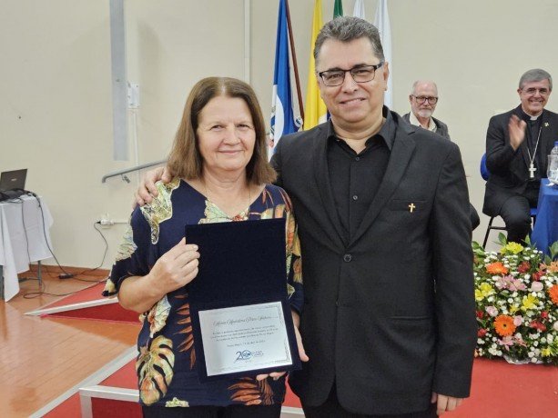 Na ocasião, também foram homenageadas as funcionárias mais antigas da casa: Edna Maria de Lima Silveira, secretária acadêmica; Lucilene Marques, bibliotecária; e Madalena Pires Vinhais, dos serviços gerais. Além delas, também receberam homenagens as egressas das primeiras turmas de Filosofia e Teologia, respectivamente, profª. Leila Silvia Latuf S. Tourinho e Rita de Cássia P. Rezende.